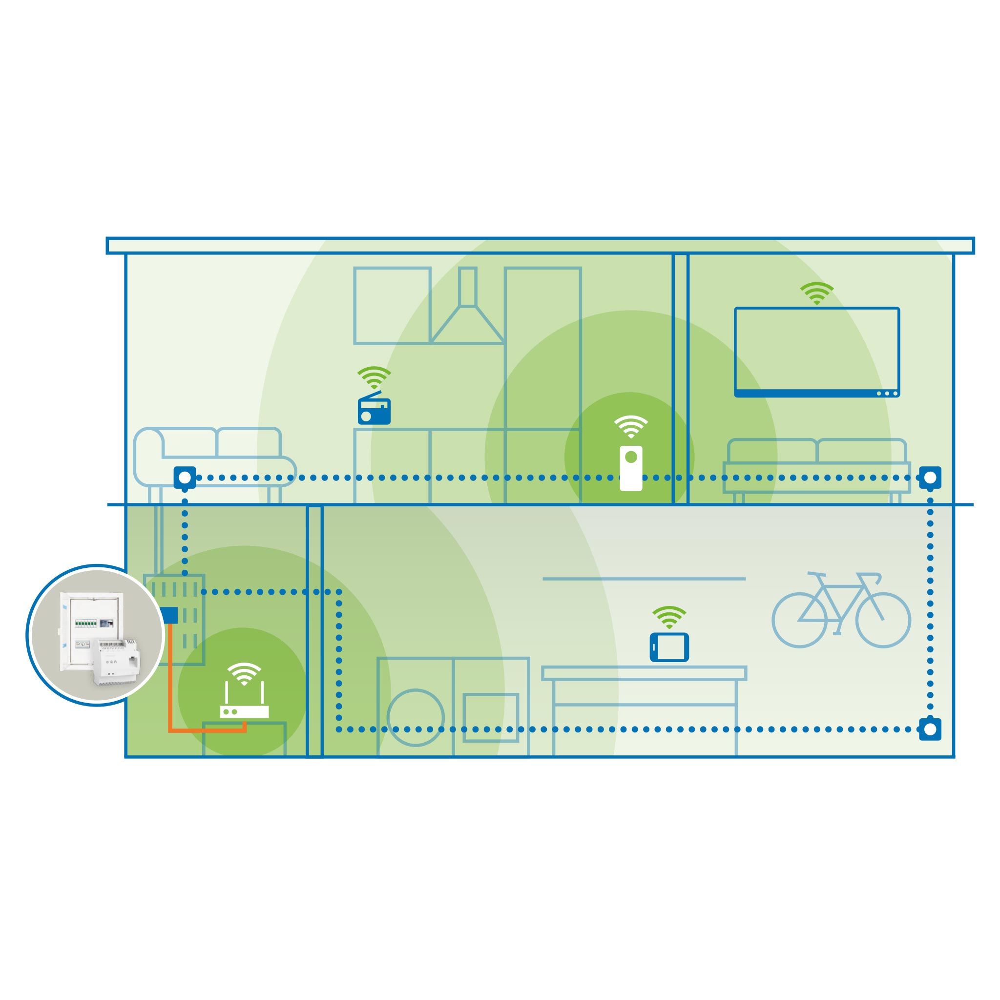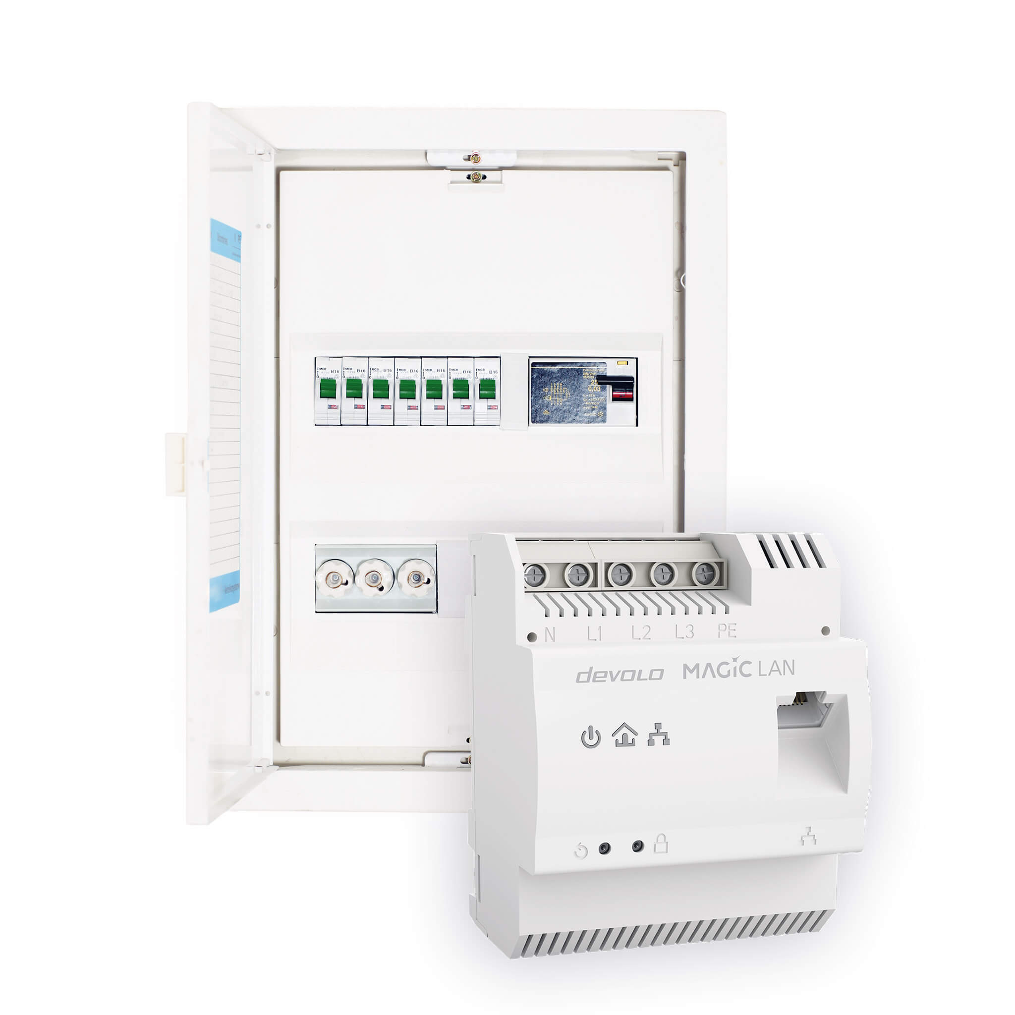 The Magic 2 LAN DINrail adapter optimizes your data transmission directly in the distribution board or fuse box, significantly enhancing the performance of your Powerline network. Thanks to the automatic phase coupling, you can boost the data throughput rate at every outlet in the house! It is an ideal extension for your network, for example, for building automation, smart home applications, or your multimedia center.