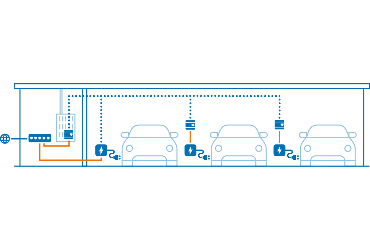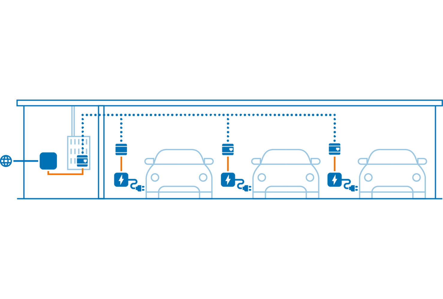 The devolo MultiNode LAN is a customised solution for networking charging stations that minimises the planning and implementation effort for the required communication infrastructure.