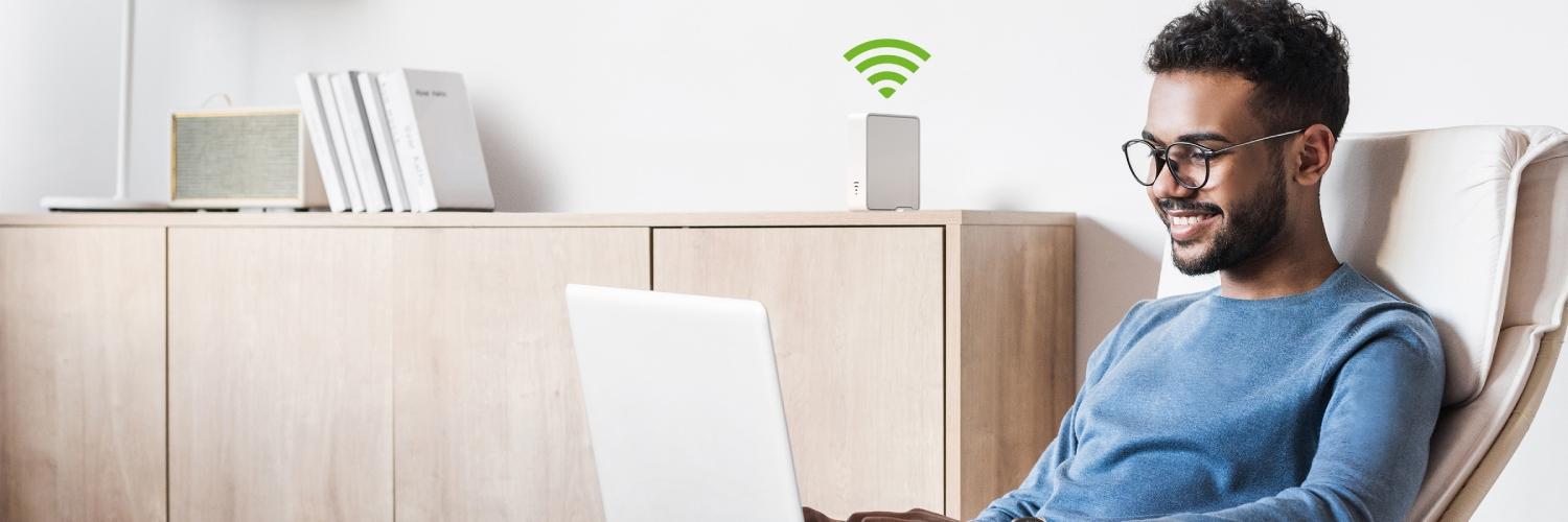 Plug it in, press the button, and surf. This is the devolo Success Promise: stronger Wi-Fi without complicated setup. With the push of a button or using the devolo Home Network App and a web interface, configuration is a breeze.