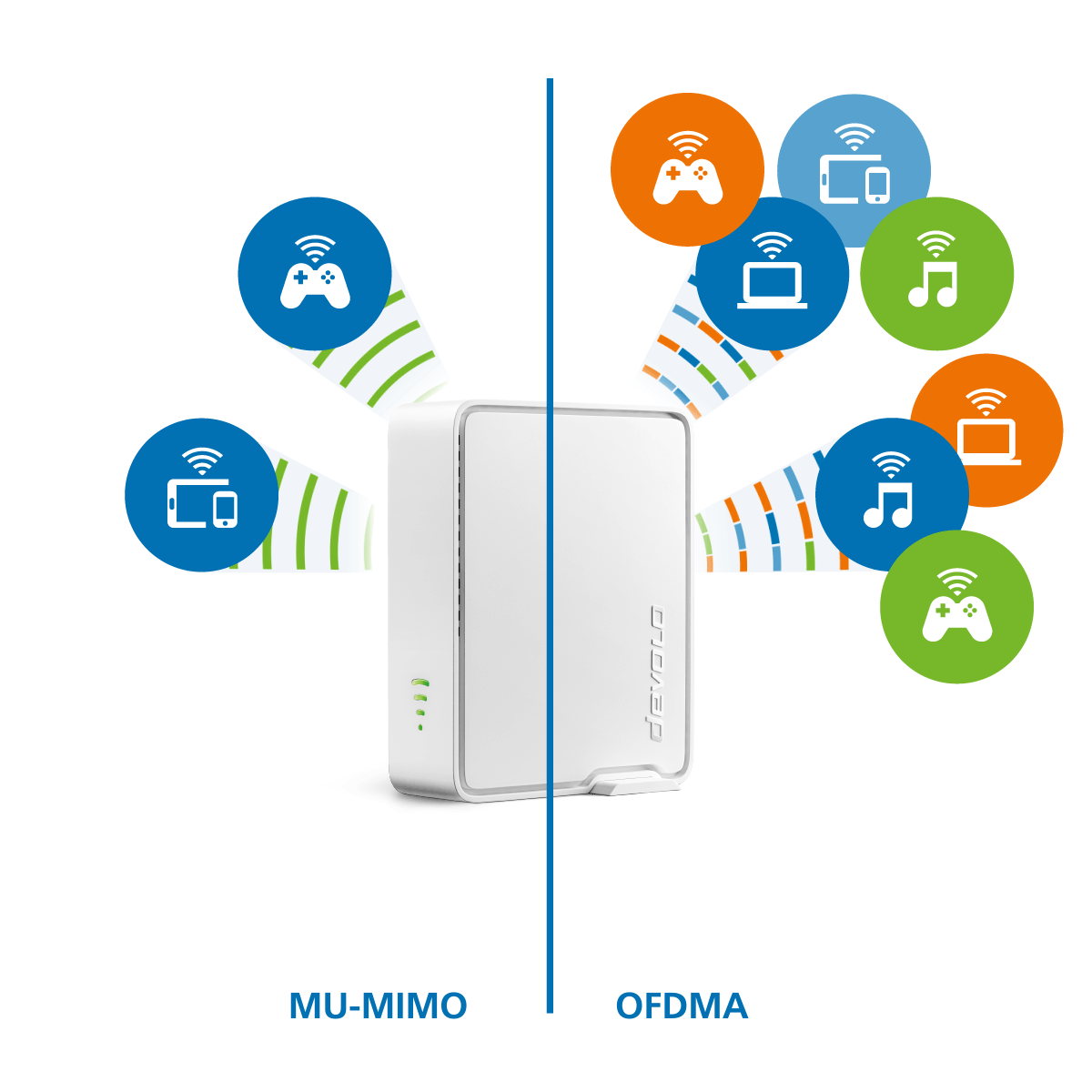 Among the new technologies is OFDMA. By subdividing the available data channels into small units, OFDMA enables highly efficient transport of data packets, allowing Wi-Fi access points to serve many devices simultaneously – quickly, powerfully, and reliably.